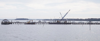 The pier reconstruction was necessitated by damage incurred during Tropical Storm Sandy in 2012, when the pier structure was battered by boats that broke free from the nearby by anchorage. The damage resulted in the far end of the pier being closed long before the reconstruction commenced.