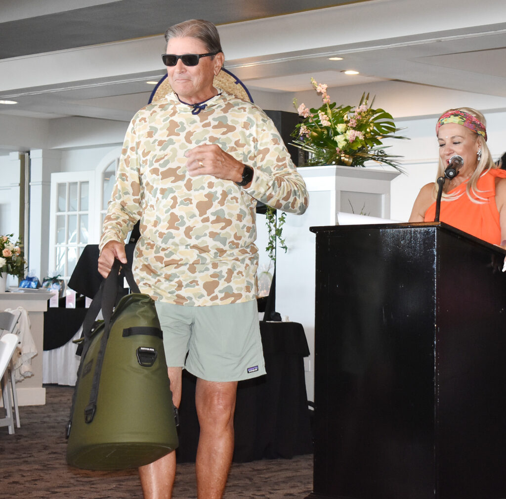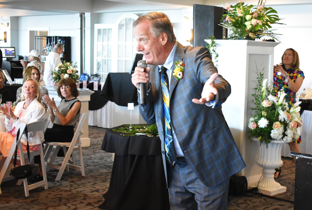 Bob Slicker (still wearing the Tweeds suit he modeled) then conducted a live auction that featured four items donated to the fundraiser.