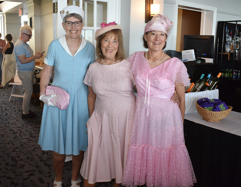 For the next hour, Noorani announced each model, the model’s outfit or ensemble and the business that provided it. The first models to walk the banquet room floor were garden club members Loretta Estabrooks, Kim Gargiule and Mary Lange, wearing early 1950s clothing provided by the Manatee Performing Arts Center to represent the styles women wore when the garden club was founded in 1951.
