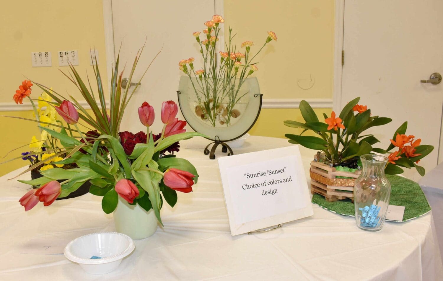 The show featured a silent auction that allowed attendees to bid on the arrangements offered for auction, with some arrangements not offered for auction at the request of those who designed them.