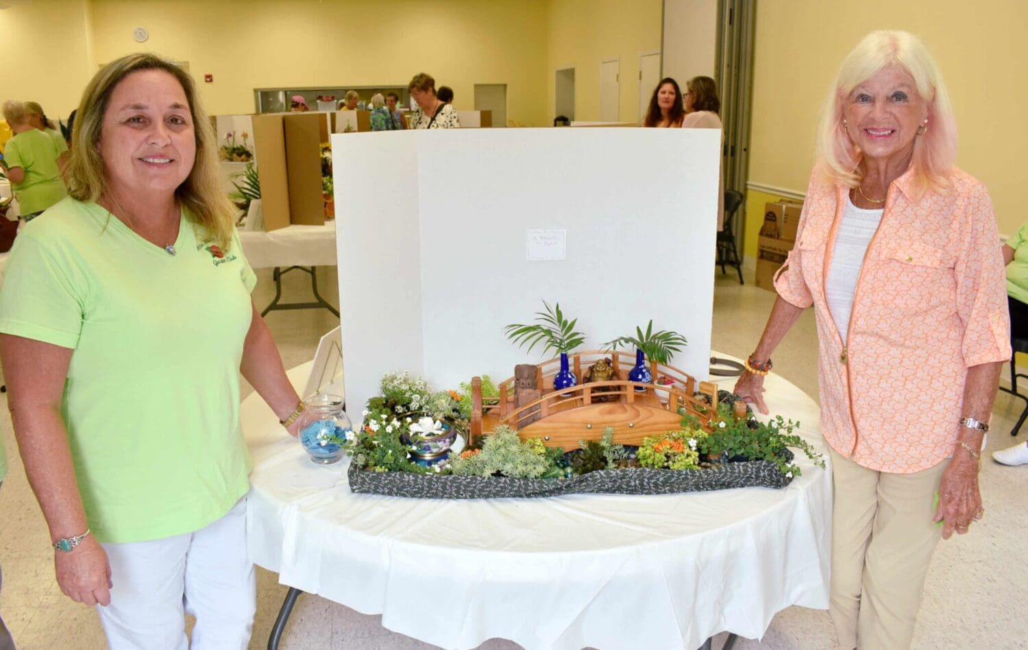 People’s Choice Award winner Tina Wolfe designed the “A Bridge to Peace” arrangement that received 113 votes, the most in the show. Her arrangement featured a wooden bridge and a Buddha statuette as centerpieces.