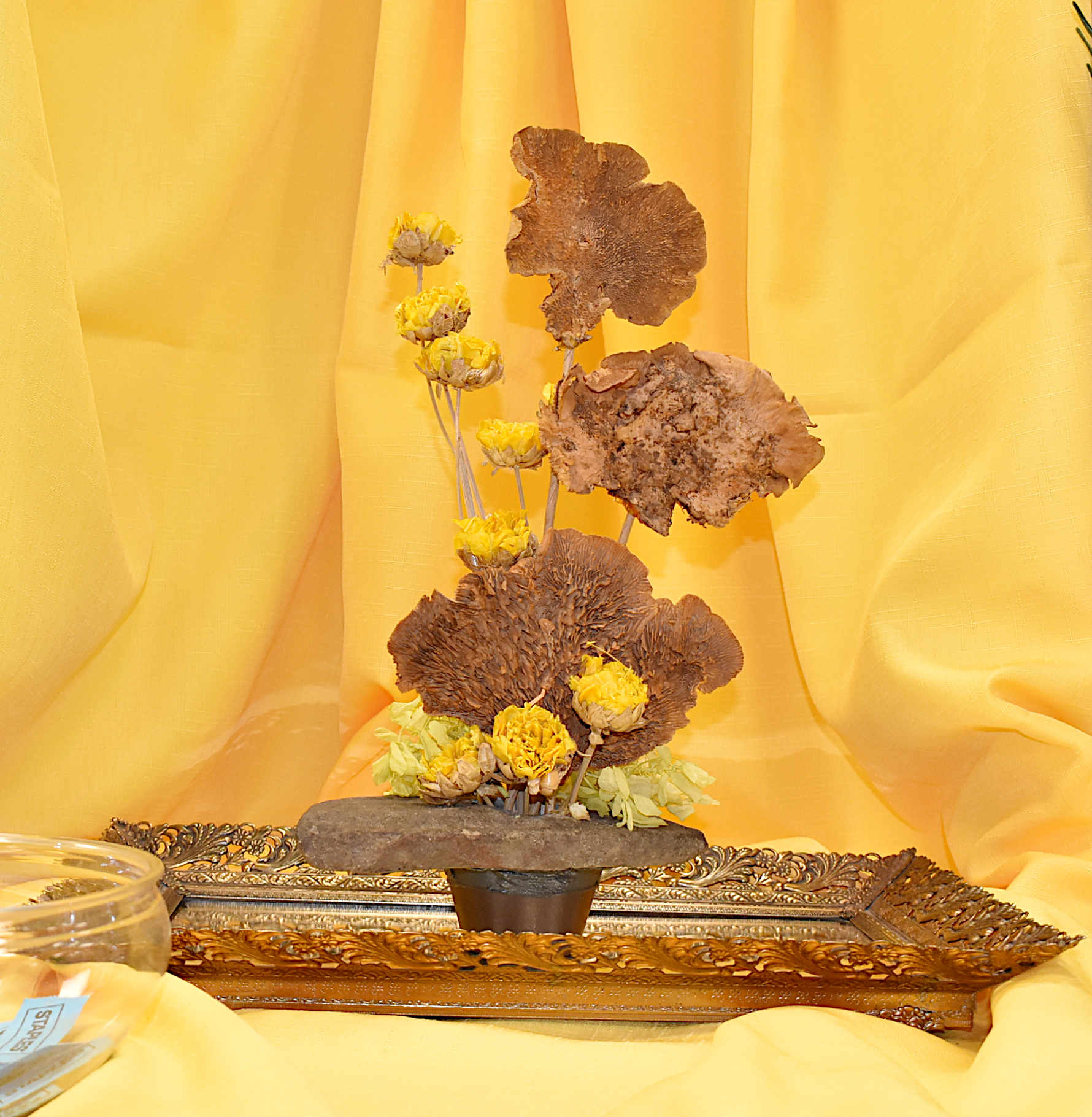 Featuring dried fungi, Ginger Wyss entered her arrangement in the Au Natural category.