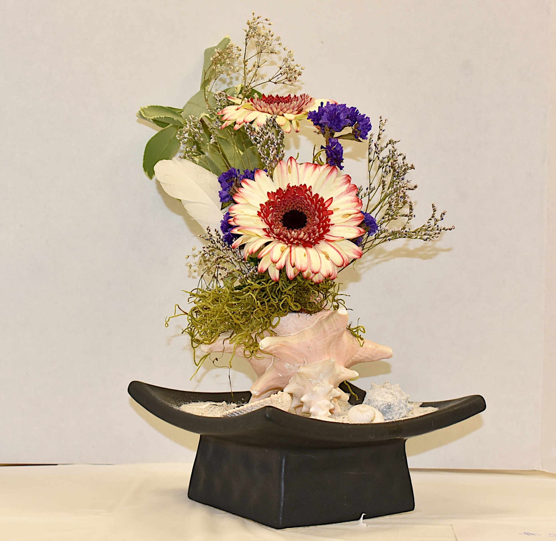 Show director Ginger Huhn developed this year’s Paradise Found theme and the 10 categories that included Sea Shells, Sunrise/Sunset, Bridges, Paradise (using exotic flowers), Au Natural (using native plants or flowers), Drifting Along (using driftwood), Under Water Beauty, Swaying Plants (using palms), Horticulture, Potted Plants and Sunny Beaches (fairy gardens featuring sand).