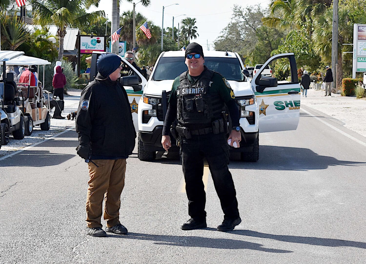 The parade vehicles included the sheriff’s office airboat, a West Manatee Fire Rescue fire engine and a Waste Management truck. Holmes Beach-based SeaBreeze Vacation entered two vehicles in the parade and three mounted sheriff’s deputies on horses brought up the rear of the parade.
