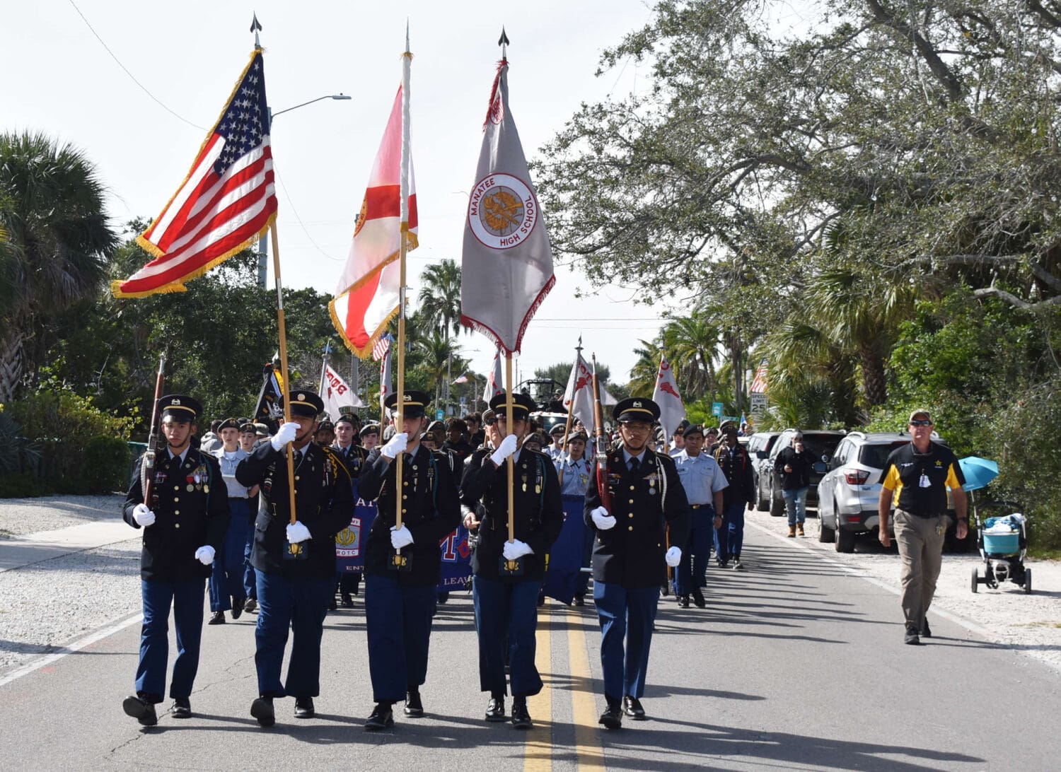 The deputies were followed by the Lakewood Ranch High School marching band that would also perform at the ceremony in the park. The Bayshore High School marching band, the Braden River High School band and the Southeast High School Marching ‘Noles also marched in the parade.