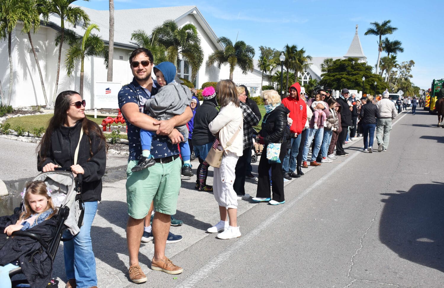 In front of Roser Church, young siblings Maggie, Charli and Millie were bundled up in blankets waiting to see friends and family members march by with the Manatee High School Junior ROTC.