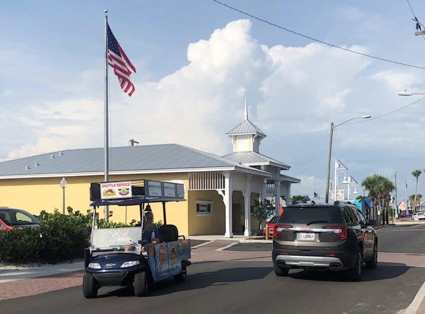 That data may also be used to support the CRA’s potential future efforts to install a dedicated tram path in the Cortez Beach parking area, running parallel to Gulf Drive. City Engineer Lynn Burnett has already discussed with county staff the possibility of a tram path and reconfiguring the Cortez Beach parking lots using diagonal parking and ropes and bollards to separate the parking areas from the tram path.