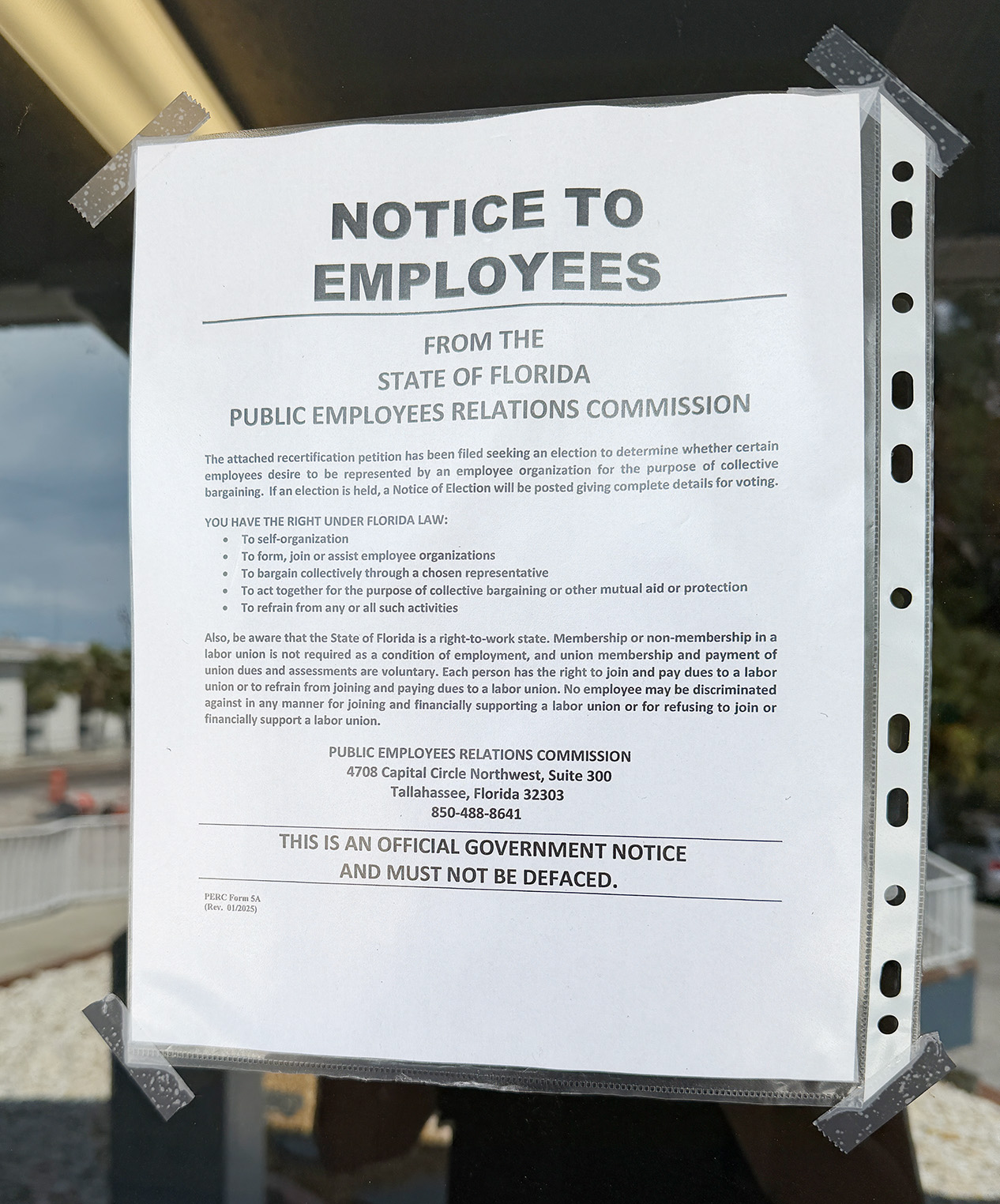 The union seeks to serve as the bargaining unit for members of the Bradenton Beach Police Department who hold the rank of officer or sergeant. The union does not seek to represent Police Chief John Cosby, Lt. Lenard Diaz or the police department’s clerk and public information officer, ChrisAnn Allen.