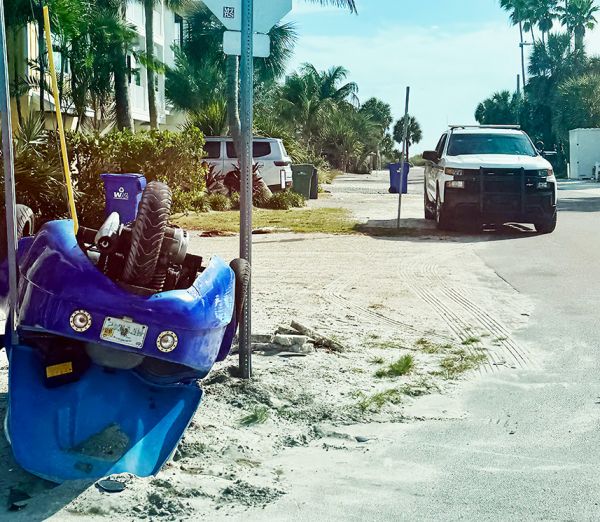 A Minnesota resident was arrested in Anna Maria after she crashed the three-wheeled ScootCoupe she was driving.