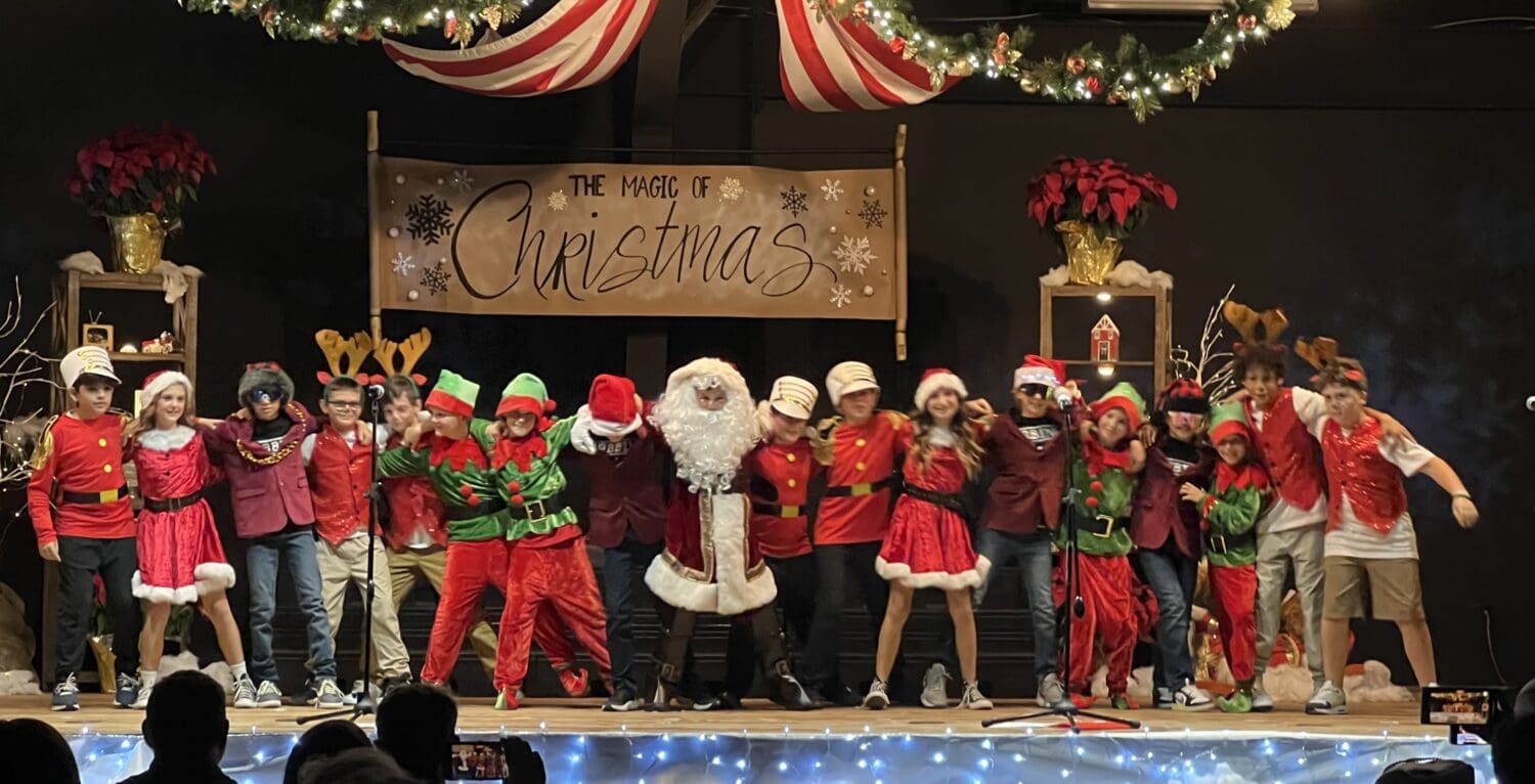 The fifth-grade cast of “The Magic of Christmas” strikes a pose after receiving a standing ovation on Dec. 19 at The Center of Anna Maria Island. From left, back row, are Mrs. Stephanie Davis, Vincent Myers, Sam May, Stryder Petitt, Jase Moore, Gunnar Maize, Sawyer Leibfried, Kellan Oelfke, Colten DeBerry, Eastin Walker. From left, front row, are Kellan Reed, Leo Tyler, Jack Palmer, Roman Smith, Fabian Cianciarelli, Grayson Hinckle, Brandon Sato, Aria Thomas and Sofia Hendrickson. – Kristin Swain | Sun