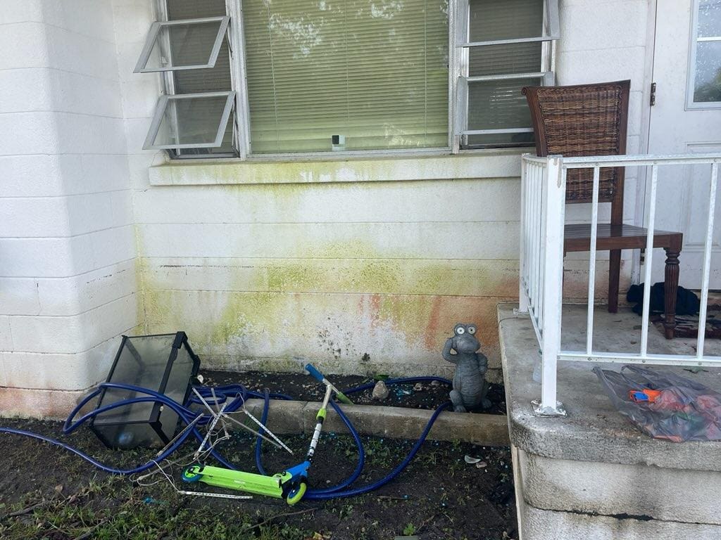 He said a full dumpster that was behind the building had been pushed to the middle of Cortez Road from the force of the storm.