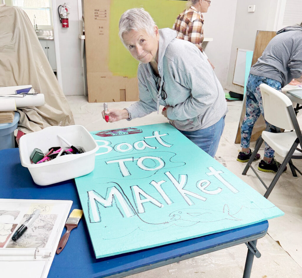 A team of volunteers gathered at the old Cortez firehouse on Saturday, Feb. 7, to paint the signs to be placed around the Cortez Commercial Fishing Festival. The signs, some whimsical, some inspirational and some featuring the festival theme, “Boat to Market,” are a tradition at the festival that this year will be held Saturday and Sunday, Feb. 14 and 15.