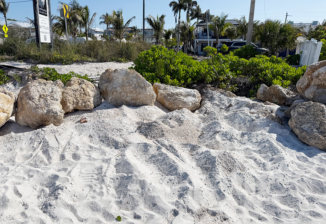 During the April 16 city commission meeting, Perry discussed an April 8 site visit from a FDEP field inspector. The genesis of the FDEP site visit pertained to a March 31 incident involving a backhoe operator who was seen piling the rocks on the west side of Gayle Luper’s beachfront property, thus blocking access from the cottage to the beach.
