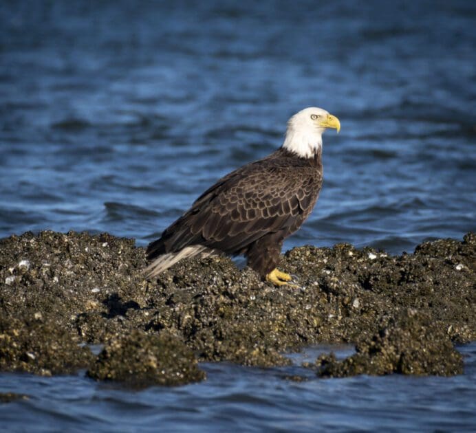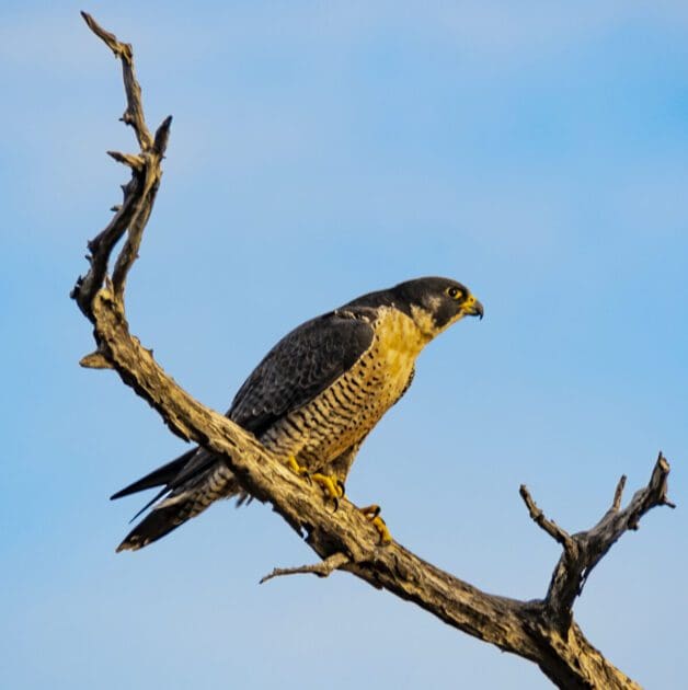 While the weather wasn’t perfect, we still had two excellent days sight-fishing big redfish in less than 2 feet of water. Since we were both avid photographers, we kept our cameras at hand and were rewarded with images of bald eagles and a peregrine falcon. During our first day, an unusually low tide kept us from fishing the exposed mangrove shorelines Angelo prefers. Instead, we fished creek mouths and the edges of oyster bars. That proved to be a winning strategy and it wasn’t long before Angelo positioned me for a cast to a big redfish sitting in about 6 inches of water. My first cast was off target but the fish didn’t spook and on my next presentation, the fish inhaled the fly on the second strip. In my world, I consider this the “apex of angling,” watching a fish pushing 35 inches open its mouth and turn on its side to take the fly! We had numerous shots and hookups that day and I was impressed with the stamina of the fish that made numerous long runs well into the backing.