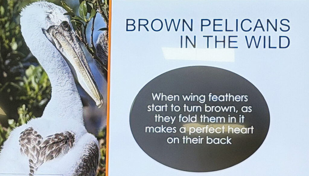 The presentation was given at the Island Branch Library and those who attended learned about the characteristics of, and the perils to, brown pelicans.