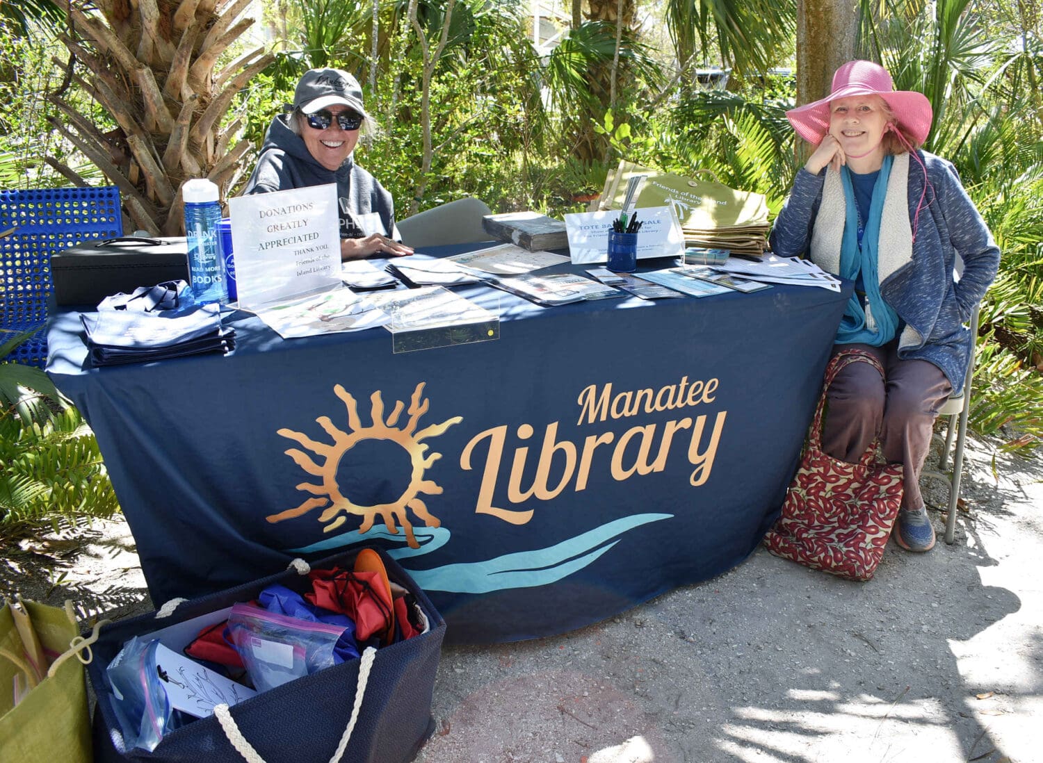 Longtime festival participant Donna Stansbury used her old-fashioned spinning wheel to once again demonstrate how yarn is spun from wool. Holmes Beach resident Nancy Deal and Assistant Librarian June Battersby represented the Friends of the Island Library and local musician Mike Sales provided the live music.
