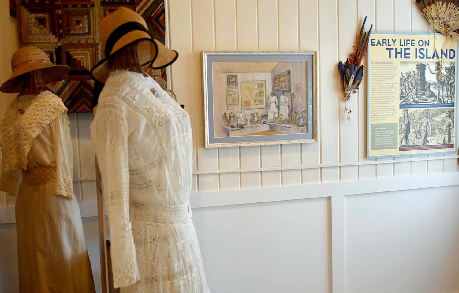 This year’s event featured a dedication ceremony for a painting donated by local artist and longtime Island resident Joan Voyles. The painting Voyles created in 2012 now hangs near the dresses and other artifacts she depicted in it.