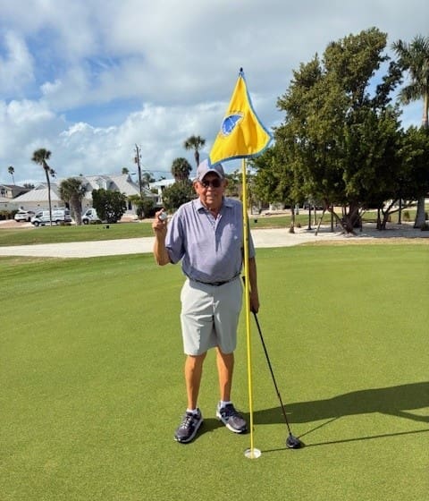 Bill MacMillan scored a hole-in-one at Key Royale Golf Club on Dec. 19. Using his 5-wood on Hole #3, measuring 132 yards, it was his second career hole-in-one. Bill then treated the golfers to traditional beverages. – Key Royale Golf Club | Submitted