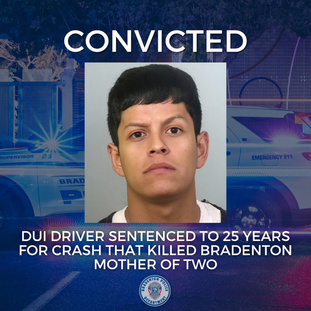 On Thursday, April 16, the Bradenton Police Department issued a press release that said, “This afternoon, Cesar Navarrete, arrested in November 2024 on multiple charges, including vehicular homicide and DUI manslaughter, was sentenced to 25 years in prison.