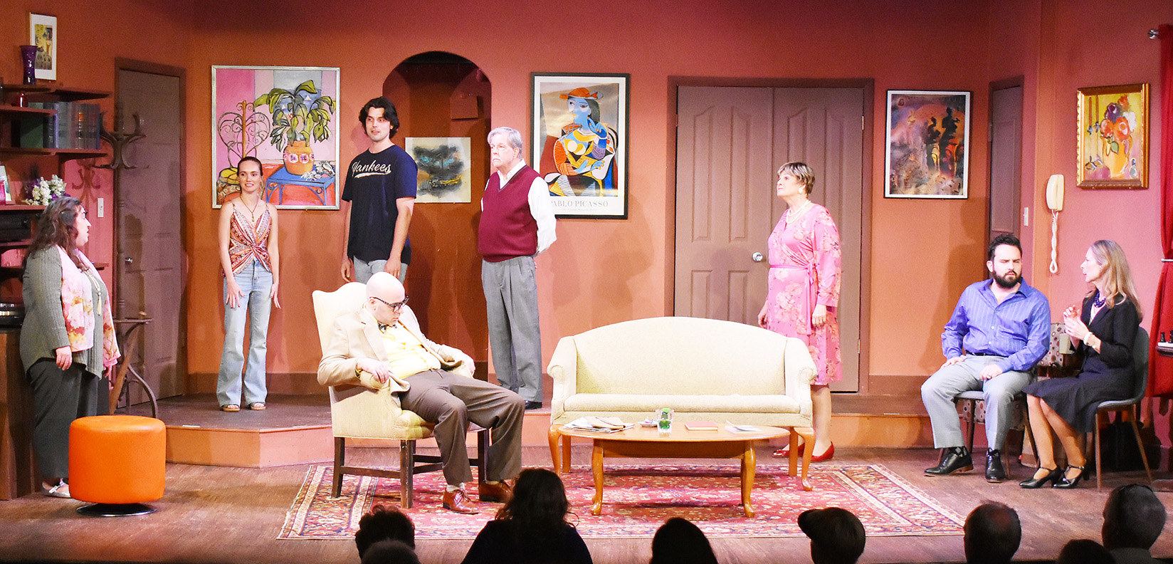 This premise sets the scene for the comedic interactions and interludes that ensue. The trouble begins when Samuel’s adult daughter, Cynthia, (played by Morgan Powis), pays a morning visit to the New York City apartment she grew up in and discovers a second coffee cup in Samuel’s living room. Much to her chagrin, there are traces of lipstick around the rim of this unexpected second cup and Cynthia is displeased to learn that her father is moving on from the passing of her mother and his longtime wife.