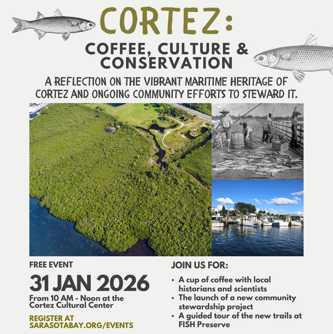 The initiative will be introduced during the “Cortez: Coffee, Culture & Conservation” event taking place Saturday, Jan. 31, from 10 a.m. to noon at the Cortez Cultural Center at 11655 Cortez Road W.
