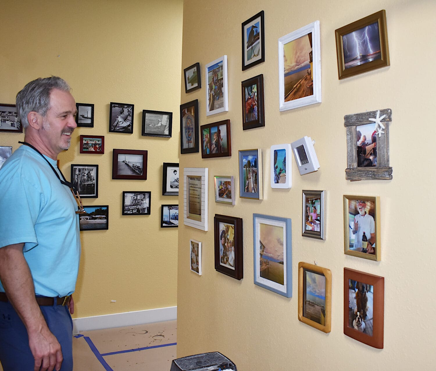 “If you look to your right, you’re looking toward the gate and the Island,” Lemke said of the mural that includes images of a hammerhead shark, manatees, a pelican flying overhead and people sitting on the pier benches – including now-retired longtime Rod & Reel Pier Manager Dave Cochran.