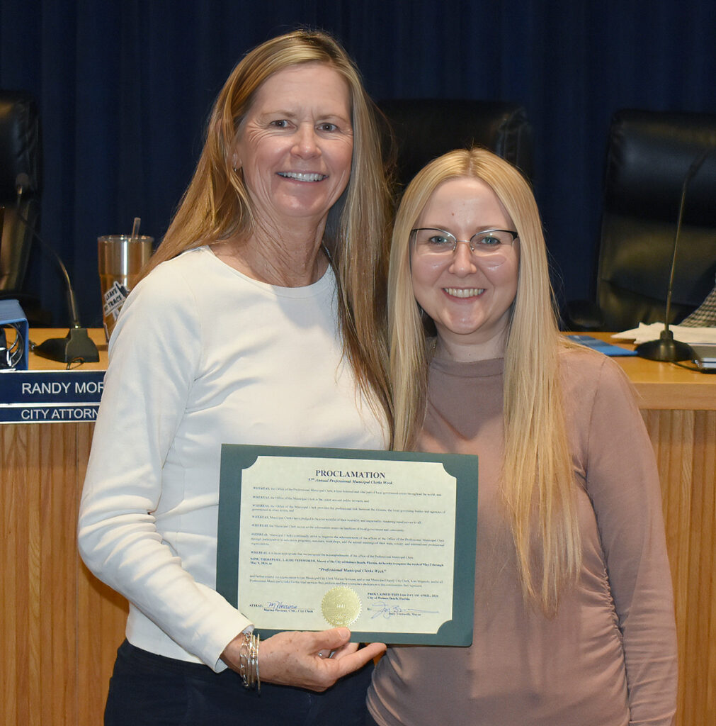 During their respective city commission meetings, Anna Maria City Clerk Amber LaRowe, Bradenton Beach City Clerk Terri Sanclemente and Holmes Beach Clerk Marina Hovious were honored with similar proclamations provided by the International Institute of Municipal Clerks.
