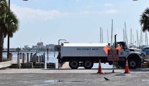 This potable water truck was used to block one side of the Riverside Boat Ramp Thursday afternoon after it closed for the day. – Joe Hendricks | Sun