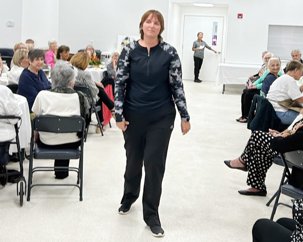 Roser volunteer Kathie Rieder served as the fashion show’s master of ceremonies and the models walked to keyboard music performed by Roser Church Musical Director Edita Urbon.