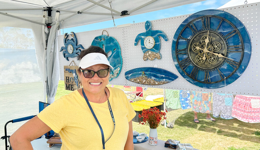 Yvette Alleman, creator of Tide and Time Designs, displayed her resin artwork that included trays, coasters, clocks and custom statement pieces. After years of co-owning a resin business, Alleman recently launched her own venture focused on her personal artistic style.