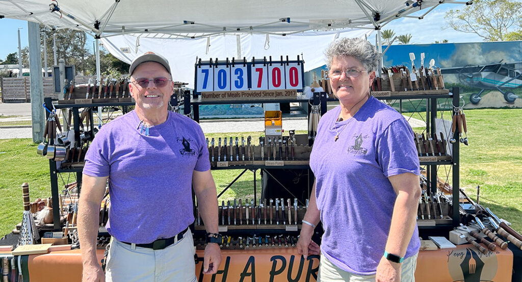 Created by Darren and Michelle Gillitt of Scaly Mountain, North Carolina, the Pens with a Purpose booth featured hand-crafted fountain pens and wood-turned items. The couple began making walking sticks for their son’s Boy Scout troop and later created custom pens for Eagle Scouts. Each item sold helps provide at least 25 meals to food banks in northeast Georgia and western North Carolina.