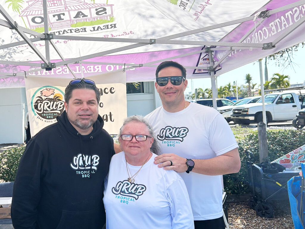 Led by owner and chef Ben Sato, gRub Tropical BBQ served braised brisket tacos topped with apple slaw and cilantro lime cream, with team members Joe and Moussau preparing the tacos.