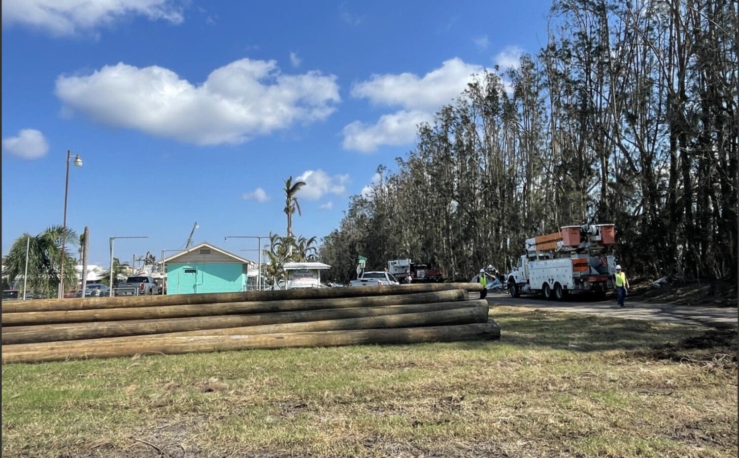 Working as part of Florida Power and Light’s Emergency Response Team the crews installed utility poles, lines and electrical equipment on Tuesday.
