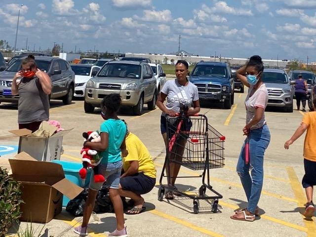 Church volunteer Jennifer Hawkes looked at the donated supplies and said, “This is just amazing. We’ve got a lot from Florida and I have another shipment coming. I had a group of guys from Wisconsin drive down yesterday in their pickup. We’re getting donations from all over. We’re disbursing it to our community and we’re sending it out to the communities and small towns that aren’t getting the media attention Lake Charles is getting.”