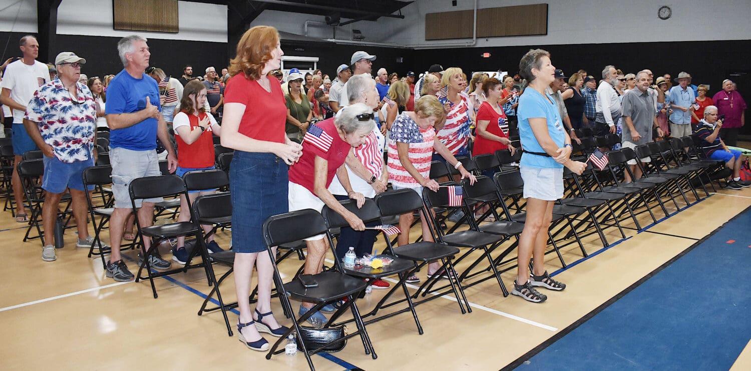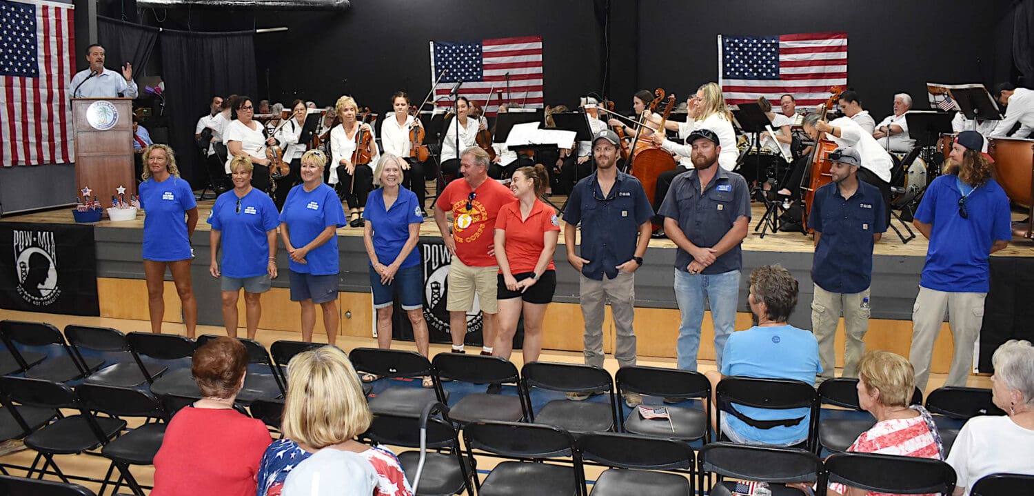 Held on Monday, May 26, this year’s Patriotic Symphony Salute took place inside The Center of Anna Maria Island gymnasium because a portion of City Pier Park is still being used as a post-hurricane temporary post office.